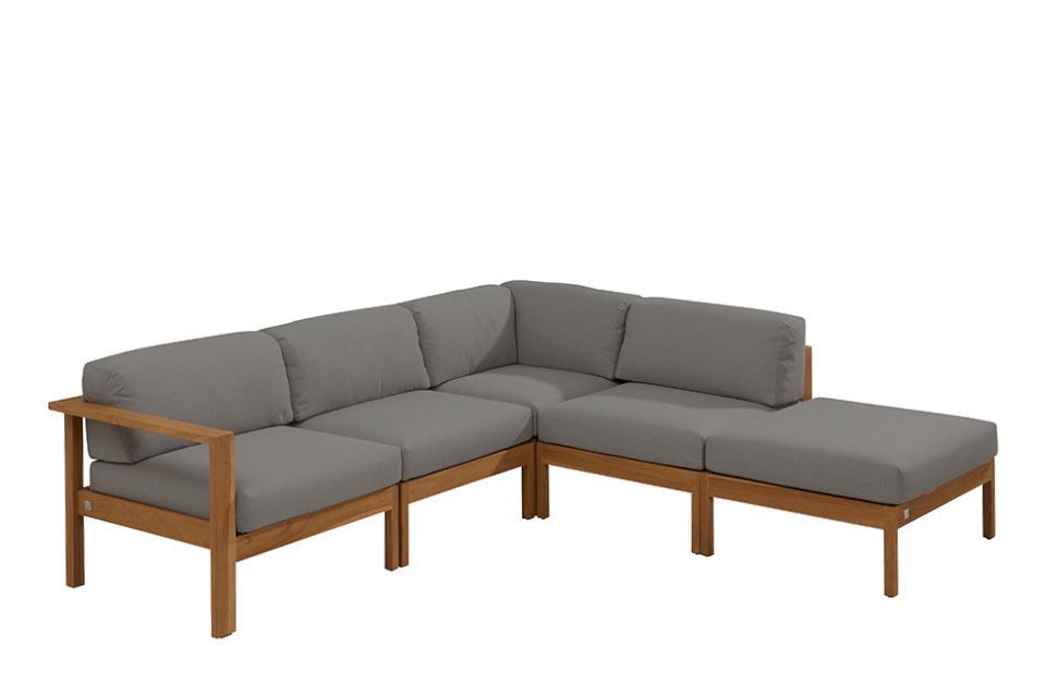 Lido loungeset – Naturel en tijdloos design!De Lido loungeset van 4 Seasons Outdoor is gemaakt van FSC gecertificeerd teakhout, zodat u een verantwoord product heeft met een natuurlijk karakter. Door het natuurlijke karakter van het teakhout kan het gaan wijken en zal het zonder behandeling na verloop van tijd verkleuren. De dikke kussens zijn gemaakt van all-weather materiaal en vormvast, zodat ze mooi in model blijven en bestand zijn tegen weersinvloeden.Deze Lido loungeset bestaat uit:2x Hoekelement – 81(l) x 81(d) x 78(h) cm, 2x Tussenelement – 73(l) x 81(d) x 78(h) cm, 1x Voetenbank – 73(l) x 81(d) x 44(h) cm, 5x Rugkussen – 5x Zitkussen