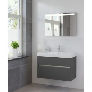 Bruynzeel Miko meubelset 81 cm.met spiegelkast en led verlichting grafiet