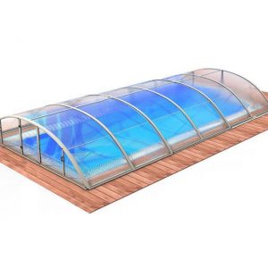Donkerbruin gebeitst massief mangohout, met aluminium omlijsting en handgrepen