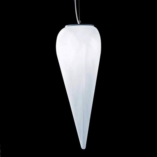 Opmerkelijke hanglamp Alice Hanglamp Alice is van hoogwaardig wit glas gemaakt en heeft naar onderen een conisch toelopende vorm met een aantrekkelijk uiterlijk. Wat vooral opvalt, zijn de in het glas verwerkte golven, die deze lamp een dynamisch uiterlijk geven. Energie-klasse: A++