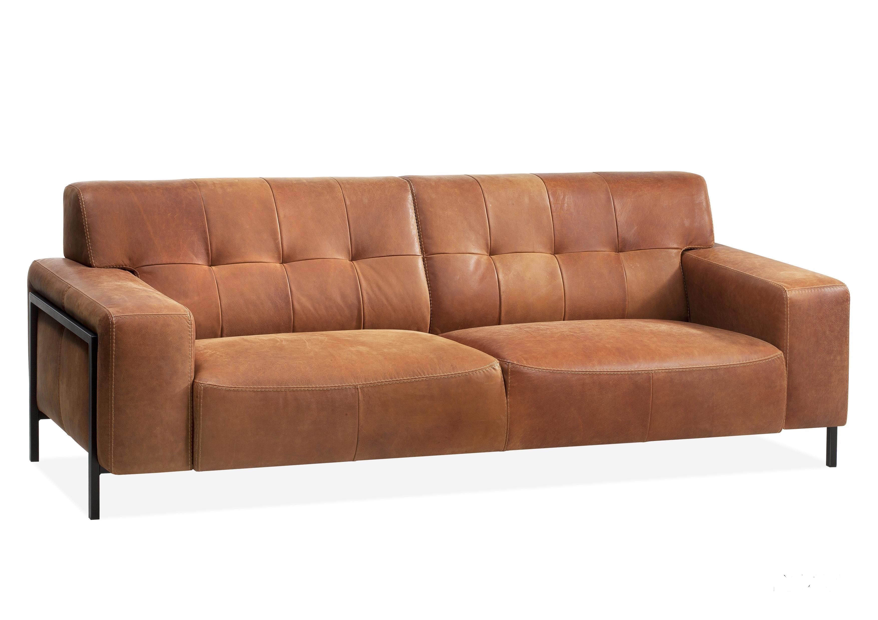Ben je op zoek naar een stoere bank met industriële details? Dan is bank Evander jouw match. Deze 3-zits is bekleed met de leersoort Cowboy in de kleur rust en heeft een zwart metalen frame. Het carréstiksel in de rug en de dubbele stiknaad langs de zitting geven bank Evander een trendy look.
