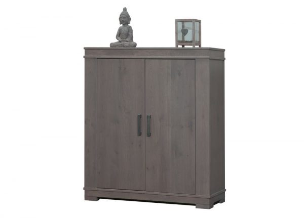 Met jachtkast Alton in de woonkamer creëer je een eindresultaat van luxe en charme, een spraakmakend geheel, dat garant staat voor jarenlang woonplezier. De hoge kast is vervaardigd van massief eiken en afgewerkt in de kleur VDD004 mountain grey, voor een gematteerde uitstraling met klasse. Achter de twee kastdeuren vind je ruimte genoeg om alle bezittingen die je in het meubel kwijt wilt, hun eigen plaats te geven. De metalen handgrepen op de twee kastdeuren geven jachtkast Alton een robuust randje. Op het bovenblad van de kast is ruimte genoeg voor het uitstallen van een select gezelschap van accessoires, zodat het geheel een sfeer van chique elegantie ademt.