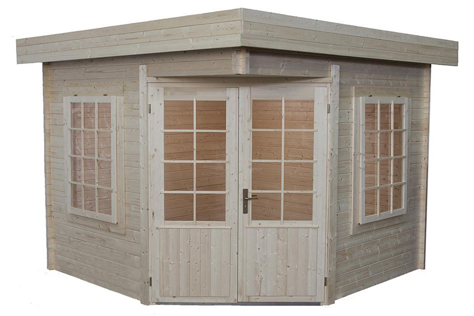 Blokhutten van Interflex staan als een huis in uw tuin!Met ervaring vanaf de jaren zeventig in de vorige eeuw beheerst Interflex het maken van blokhutten tot in de puntjes. Met een Interflex blokhut koopt u een kwaliteitsproduct.Dit hoekmodel blokhut Plus is een blokhut met een luxe afwerking. Deze blokhut is uitgevoerd met een stakke hoekpaalconstructie, modern platdak, bredere dubbele deuren en 2 extra grote uitzetramen. Een Interflex blokhut wordt geleverd inclusief duidelijke opbouwbeschrijving en kwalitatief hang- en sluitwerk.Deze blokhut is ook geimpregneerd te bestellen. Impregneren levert een langdurige bescherming van het hout van uw blokhut op. Om aantasting te voorkomen monteert Interflex het beslag pas na het impregneren van uw Interflex Blokhut