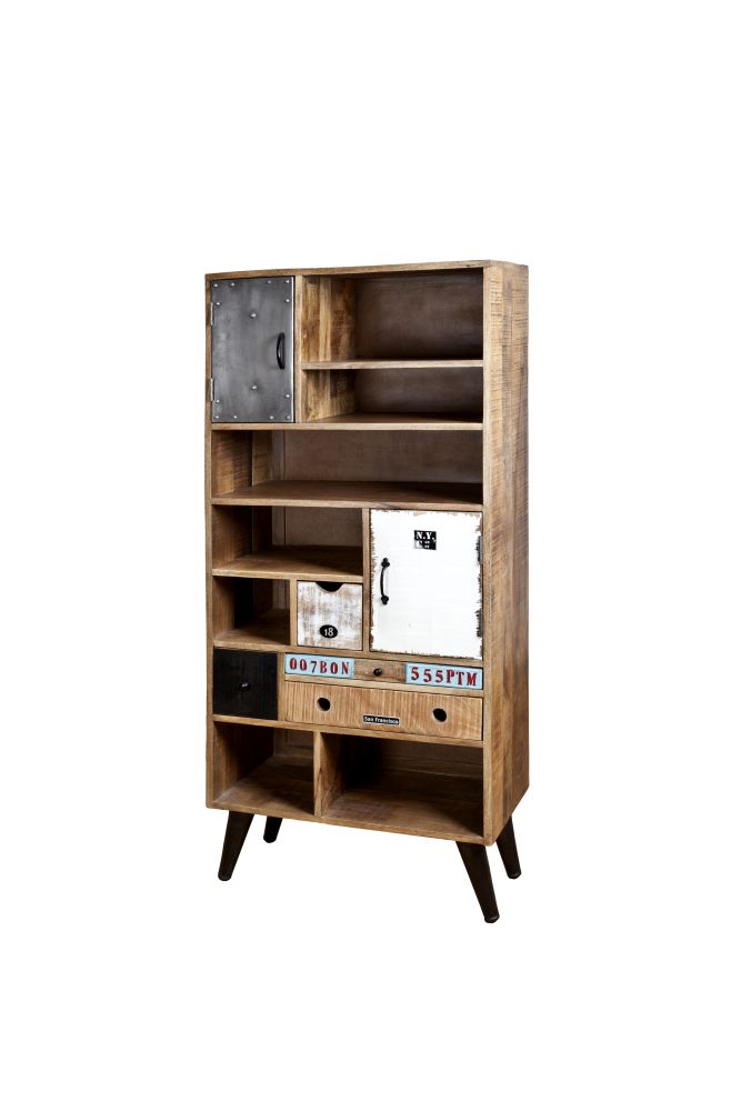 Met een bergmeubel in een vintage look kun je niet verkeerd kiezen en door de visuele aantrekkingskracht van dit model weet je helemaal zeker dat je goed zit. Boekenkast Vintage heeft een frame van massief hout in de kleur naturel en wordt gedragen door schuin geplaatste ronde poten van zwart metaal. Door de kast te voorzien van een unieke vakverdeling en verschillende ladefronten toe te voegen krijgt de boekenkast een stoere look, die de ruimte waar je hem neerzet een bijzondere edge geeft. Met deze boekenkast in huis heb je altijd plaats genoeg voor het etaleren van jouw boekenverzameling en collectie accessoires.