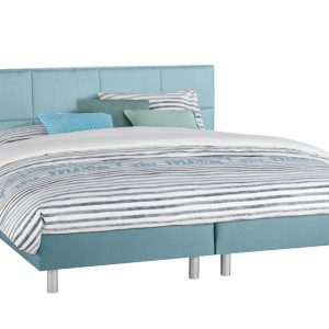 Boxspring Colorado Vlak Denver Met X1000 Matras Beddenreus. Deze modern vormgegeven boxspring bestaat uit twee vlakke boxen met een verende lattenbodem en aluminium poten. De boxspring wordt geleverd inclusief hoofdbord met strakke uitstraling en een Bridge matras. Dit 6-slags pocketveermatras met ca. 260 veren per m2 heeft een comfortabele afdeklaag van schuim. Het matras heeft 5 comfortzones en is geschikt voor personen met een gewicht tot 80 kg. Bij de twijfelaar en tweepersoons uitvoeringen van 120 cm en 140 cm breed krijg je een 2-persoonsmatras. De uitvoeringen van 160 cm en breder hebben twee 1-persoonsmatrassen. Mooi ook voor de tienerkamer en helemaal af met een hocker in dezelfde kleur!