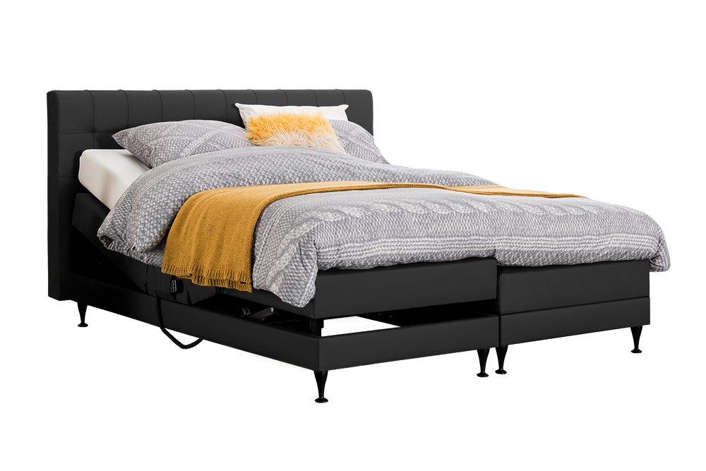 Boxspring Helsingborg Verstelbaar Met Pocketveer Matras Nordland. Ervaar het echte Scandanavische slaapcomfort met de Helsingborg verstelbaar met pocketveermatras. Deze moderne boxspring combinatie uit de Nordland collectie bestaat uit twee elektrisch verstelbare pocket boxsprings, pocketveer matrassen en heeft een Helsingborg hoofdbord. Bij de uitvoering van 140 cm breed zit een 2-persoons matras. De uitvoeringen van 160 cm en breder hebben twee 1-persoons matrassen. Deze boxspring combinatie is uitgevoerd met zwarte Conico poten.