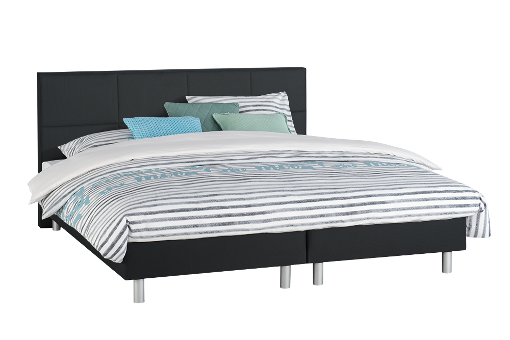 Boxspring Iowa Vlak Met Polyether Matras Beddenreus. Deze sfeervolle boxspring Iowa bestaat uit twee vlakke boxsprings, hoofdbord en matras Bridge. Het matras Bridge is een polyether matras SG24 met een hoogte van circa 12 cm en geschikt voor personen tot 80 kg. De uitvoering 140 cm is met een tweepersoons matras. De uitvoeringen 160 cm en breder zijn met twee matrassen.
