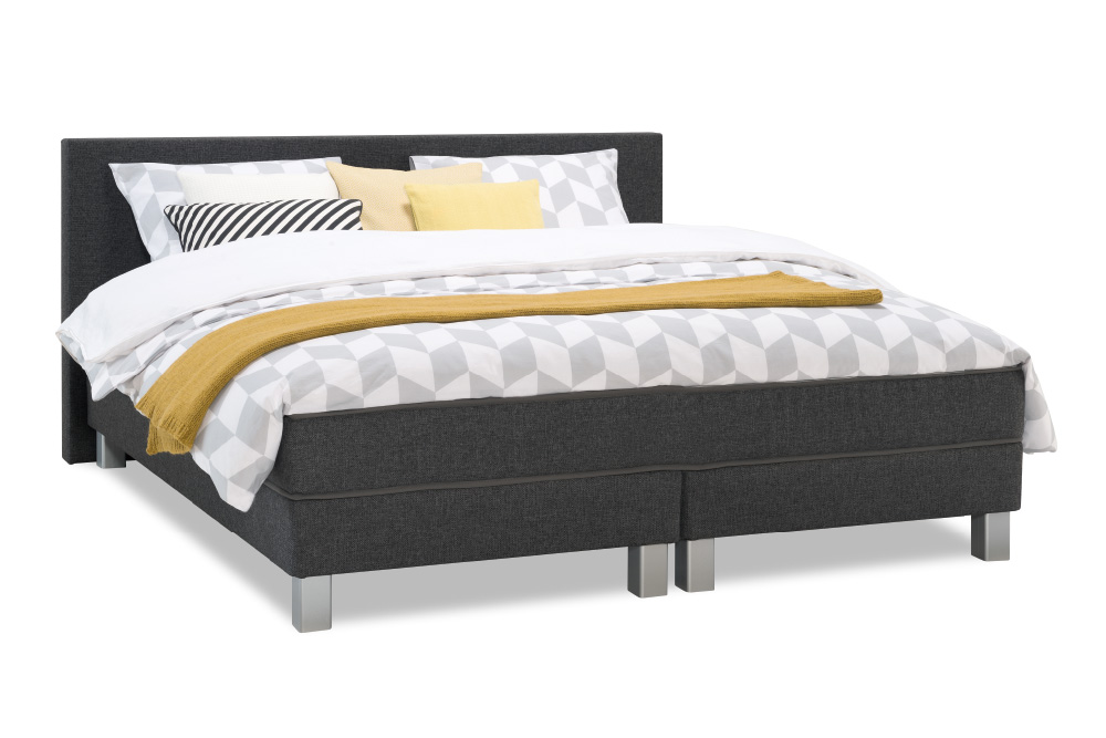 Boxspring Kerry De Luxe Vlak Met Gestoffeerd Matras Beddenreus. Op zoek naar een boxspring van goede kwaliteit voor een lage prijs? Kerry de luxe is compleet en dankzij de ruime keuze aan kleuren geschikt voor elke slaapkamer. Dit bed bestaat uit twee vlakke boxen met latten, een mooi hoofdbord, meegestoffeerd matras en een topmatras. Het bonellveermatras heeft een hoogte van zo’n 17 cm en is geschikt voor mensen tot 100 kg. Bij deze uitvoering van 140 cm breed krijg je een tweepersoons matras. De uitvoeringen van 160 cm en breder worden geleverd met twee losse matrassen. Ben je lang? Ga dan voor een lengtemaat van 210 cm!