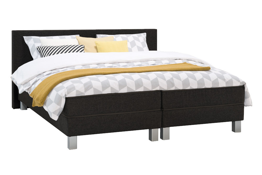 Boxspring Kerry De Luxe Vlak Met Gestoffeerd Matras Beddenreus. Op zoek naar een boxspring van goede kwaliteit voor een lage prijs? Kerry de luxe is compleet en dankzij de ruime keuze aan kleuren geschikt voor elke slaapkamer. Dit bed bestaat uit twee vlakke boxen met latten, een mooi hoofdbord, meegestoffeerd matras en een topmatras. Het bonellveermatras heeft een hoogte van zo’n 17 cm en is geschikt voor mensen tot 100 kg. Bij deze uitvoering van 140 cm breed krijg je een tweepersoons matras. De uitvoeringen van 160 cm en breder worden geleverd met twee losse matrassen. Ben je lang? Ga dan voor een lengtemaat van 210 cm!