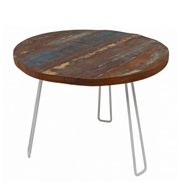 Uniek en Vernieuwend! De meubelcollectie van Brix bestaat uit eigentijdse meubelen, die zich kenmerken door de unieke vorm, kleur- en materiaalsamenstelling en bestaan uit een mix van natuurlijke materialen zoals staal en hout. De meubels van Brix geven uw huis een eigen karakter en zijn ook erg uniek, hierdoor zult u nooit een zelfde soort interieur snel tegenkomen. Alle meubelen zijn elementen met karakter. Een tijdloze collectie meubelen, waar de focus ligt op een goede combinatie tussen materiaal en vorm. Alle meubelen zijn gefabriceerd met natuurlijke, gerecyclede en gecertificeerde materialen. Vernieuwend en uniek Vintagelook Gerecyclede materialen Snel geleverd Trendy Deze ronde bijzettafel uit de Brix collectie is vervaardigd uit een wit gelakt 3-poots opengewerkt metalen onderstel met een multicolor gerecycled mangohouten bovenblad. De bijzettafel is leverbaar in 2 verschillende maten n.l. doorsnee 45cm. of 60cm.