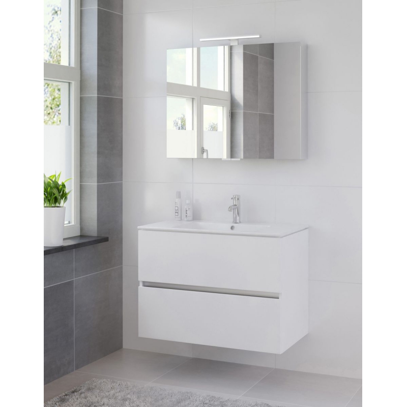 Bruynzeel Miko meubelset 91 cm.met spiegelkast en led verlichting mat wit