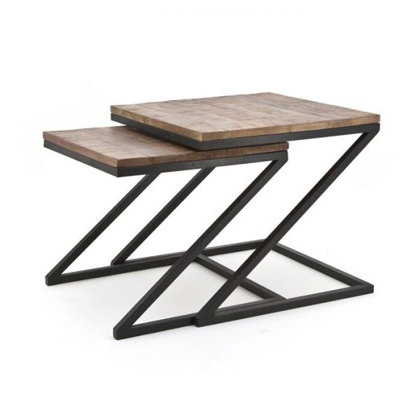Bijzettafel Zig Zag van het merk By Boo is de ideale bijzettafel in een industrieel interieur. De set bestaat uit twee bijzettafeltjes. De combinatie van het zwarte metalen onderstel en de warme houttinten zorgen voor een warme, maar stoere uitstraling.
