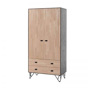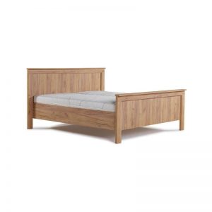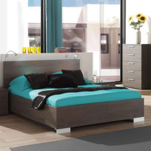 Cory tweepersoonsbed, staalgrijs fluweel met eikenhouten poten
