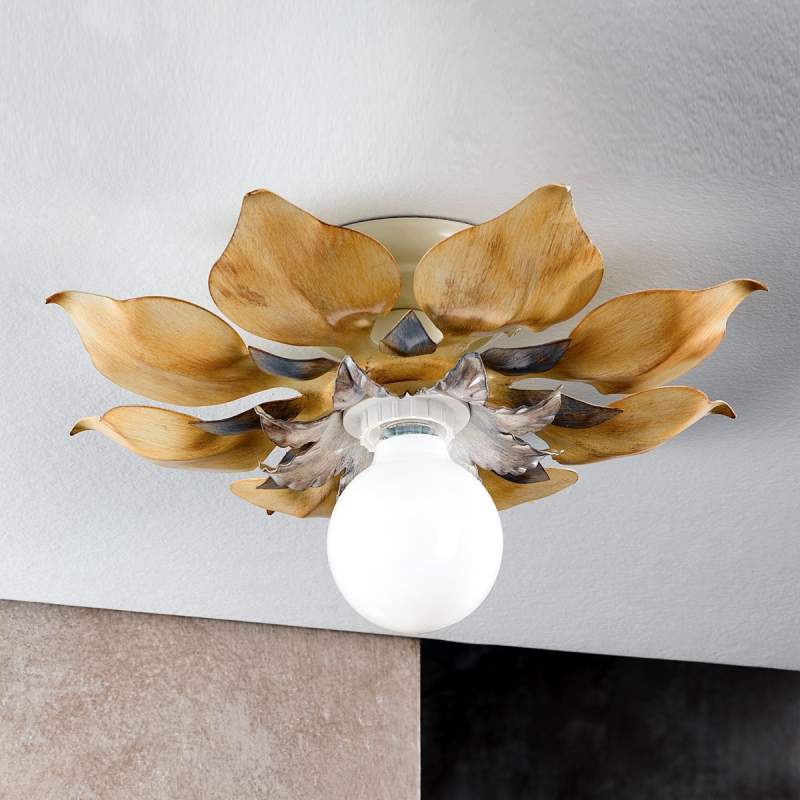 Yos – verchroomde plafondlamp met bladversiering