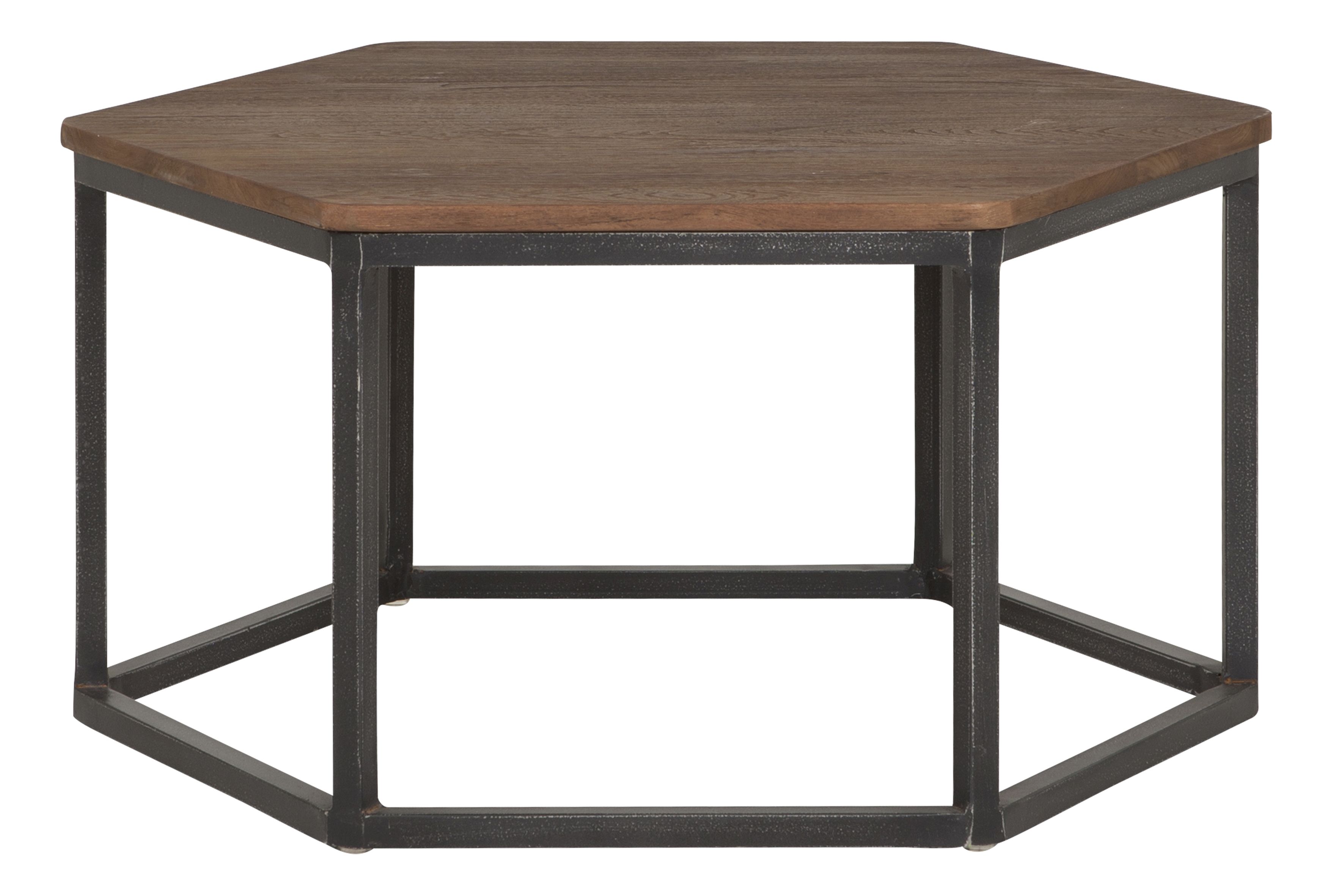 Salontafel Hexagon is een authentiek item uit de d-Bodhi collectie. Je herkent de tafel aan zijn zeshoekige vorm, frame van zwart metaal en tafelblad van gerecycled teakhout. De combinatie van deze materialen en de open structuur van het frame geven de tafel zijn bijzondere uitstraling.