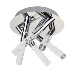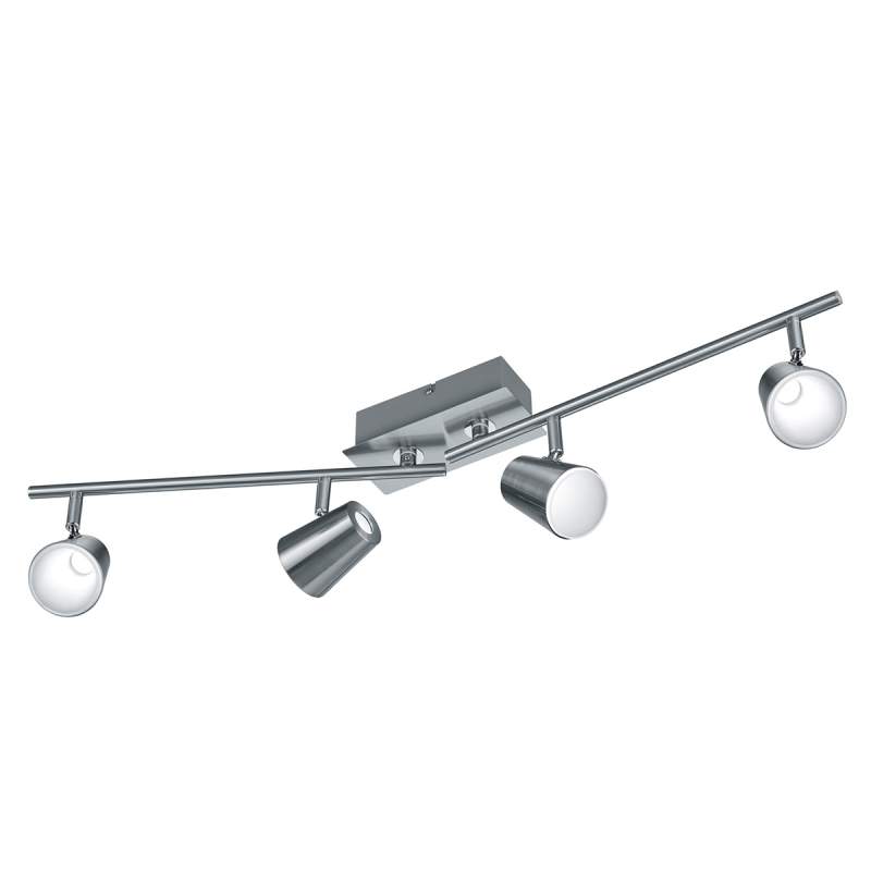 LED-plafondlamp Simon met vier armen In de vierkante verchroomde baldakijn van LED-plafondlamp Simon zijn vier verlichtingselementen ingebouwd, met elk voorzien van een LED-Board waarvan er drie kunnen draaien, zodat er steeds weer andere vormen gecreëerd kunnen worden. De LED-plafondlamp Simon verlicht op een energiezuinige manier woon -en eetkamers, gangen en slaapkamers met warmwit licht en een totale lichtstroom van 1.200 lumen. Energie-klasse: A+