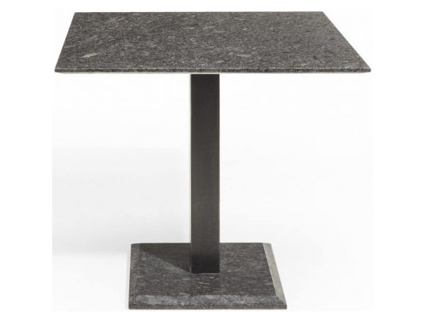 De Edam tafel vanStudio20bestaat uit:blad van 2 cm massief granietstalen poedercoat frame80x80cmPearl black Satinado bladOok in rond leverbaargarantie van 3 jaar