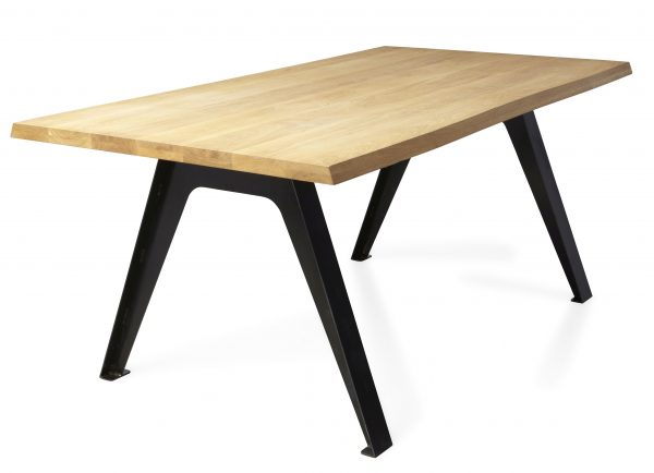 Maak de eethoek de blikvanger in de woonkamer met het toevoegen van eetkamertafel Landsberg. De royale eettafel heeft een blad van eikenhout met een afwerking in blanke matte lak en heeft een onderstel van zwart metalen poten.