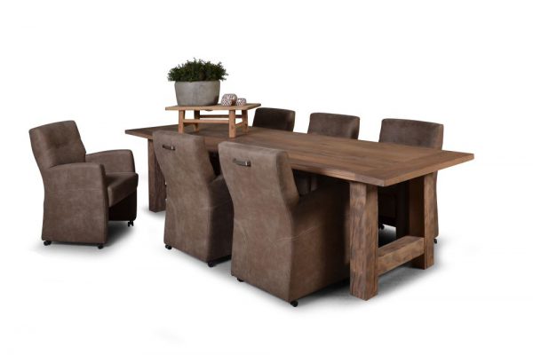 Bij het zien van het ontwerp van eetkamertafel Lewis valt je mond haast open van verbazing. De robuuste vormgeving en het stoere oude eikenhout in de kleur nature combineren tot een prachtig plaatje, dat fungeert als basis voor de eethoek in de woonkamer. Eetkamertafel Lewis heeft een royaal rechthoekig tafelblad en wordt ondersteund door een stevig frame met een vormgeving die doet denken aan de lijnen van een kloostertafel. Combineer de stoere tafel met comfortabele eetkamerfauteuils met een bekleding van zacht leer, zodat stijl en support hand in hand gaan en je optimaal kunt genieten van elk moment dat je doorbrengt aan de eetkamertafel.