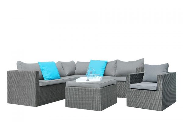 Connor Hoekbank -, Strak design & optimaal comfort!Heeft u een mooie strakke tuin of terras? Dan past deze hoekbank perfect bij uw tuin. Door het mooie grijze wicker/vlechtwerk past deze loungeset in veel stijlen. Ziet u uzelf al lekker genieten op deze loungebank, onder het genot van een drankje?Deze Connor Loungeset bestaat uit:1x Lounge- Element 2-zits links – 138(l) x 73(d) x 65(h) cm, 1x Lounge- Element 2-zits rechts – 138(l) x 73(d) x 65(h) cm, 1x Hoekelement – 73(l) x 73(d) x 65(h) cm, 1x Hocker – 72(l) x 72(d) x 40(h) cm, 1x Loungestoel – 73(l) x 73(d) x 65(h) cm, 7x Rug/Armkussen – 4x Zitkussen – 1x Hockerkussen