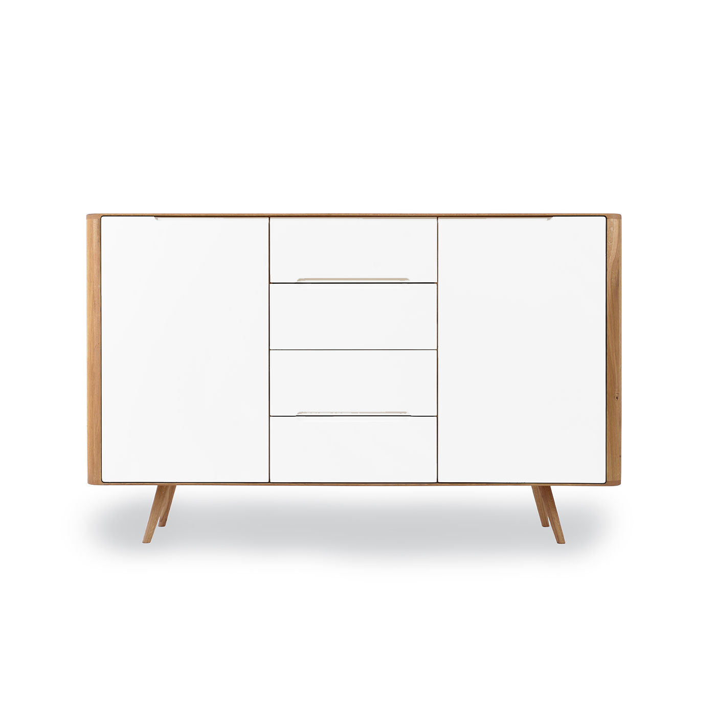 De Gazzda Ena Dresser Two is een Scandinavische opbergkast met een knipoog naar de jaren ?50. Door de combinatie van het eikenhout met de witte lades, krijgt deze opbergkast een retro jaren ?50 look. Scandinavische commode De Ena Dresser Two is een massief eikenhouten opbergkast met vier lades en twee deurtjes. Achter de deurtjes zitten aan beide kanten twee planken. Deze witte lades en deurtjes hebben het soft-close systeem. Dit zorgt ervoor dat de lades en deurtjes geleidelijk sluiten. Door de vele opbergruimtes, geruisloze lades en perfecte hoogte van 110 cm is deze kast tevens te gebruiken als commode. De Ena Dresser Two is… • Beschikbaar in verschillende varianten • Handgemaakt van massief eikenhout • Ook te gebruiken als commode • Met hoge kwaliteit afgewerkt, waardoor je er jaren plezier van hebt • Door het gebruik van wild eikenhout is elk product uniek • Gemonteerd geleverd – je hoeft alleen nog maar de pootjes eronder te zetten Wij bezorgen dit meubel gratis bij jou thuis binnen 2-5 werkdagen (indien voorradig). Wil je dit mooie Gazzda meubel vandaag nog in huis? Kies dan voor de verzendmethode ‘Ophalen in de showroom’. Als het product op voorraad is, kan je het vandaag nog afhalen in onze showroom in Almere.
