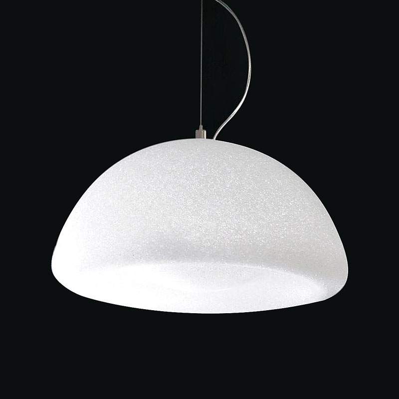 Hanglamp met een mat ijsstructuur oppervlak: ICEGLOBE SEMI maakt indruk en verspreidt aangenaam strooilicht De halfronde diffuser van hanglamp ICEGLOBE SEMI is gemaakt van polycarbonaat en heeft een onregelmatige oppervlak. Deze bijzondere vormgeving van het oppervlak heeft als effect, dat een soort strooilicht ontstaat dat bijzonder behaaglijk is. Tegelijkertijd wordt de indruk gewekt dat de lampenkap met een dunne ijslaag is overtrokken. Op deze manier steekt hij boven de traditionele kappen van glas en kunststof uit en heeft hij een unieke uitstraling. De diffuser van polycarbonaat zijn bovendien door rotatiedruk zelfdovend gemaakt. Energie-klasse: A++