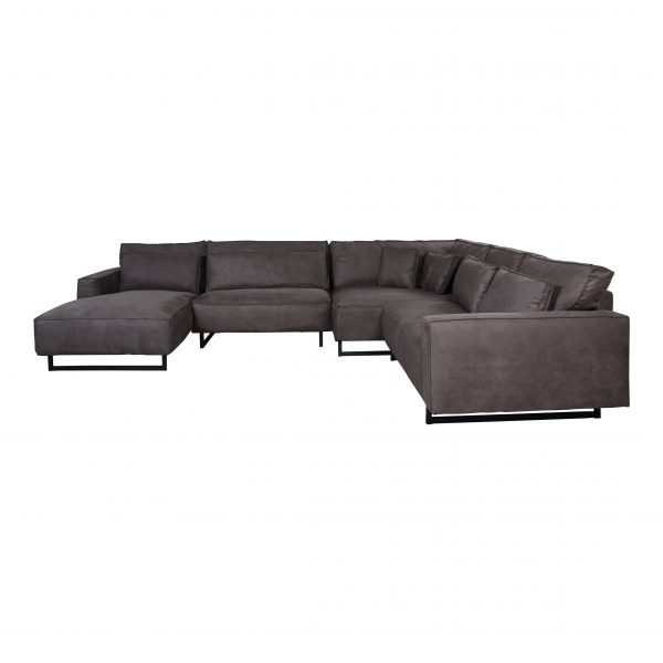 Met hoekbank Claritas in het interieur van de woonkamer kies je voor een interieur met een moderne uitstraling. De royale hoekbank is bekleed met luxe stof in de kleur antraciet en het zitmeubel wordt geleverd met vier grote en drie kleine sierkussens. De stoere zwart metalen poten maken het ontwerp compleet.