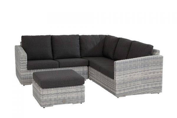 Edge Loungeset – Tijdloze coole stijl!De Edge Loungeset van 4 Seasons Outdoor is gemaakt van hoogwaardig Hularo wicker in de kleur ice. Hularo wicker is door en door gekleurd en blijft jarenlang mooi, waardoor u er 10 jaar garantie op heeft. Het ice wicker zorgt voor een koele tijdloze stijl, doordat ze ook nog eens gecombineerd wordt met de antracietgrijze comfortabele kussens. De kussens zijn gemaakt van all-weather materiaal en hebben een stevige vulling, hierdoor zijn de kussens weerbestendig en vormvast.Deze Edge Hoekbank-Loungeset bestaat uit:1x Lounge- Element 2-zits links – 132(l) x 88(d) x 75(h) cm, 1x Lounge- Element 2-zits rechts – 132(l) x 88(d) x 75(h) cm, 1x Hoekelement – 88(l) x 88(d) x 75(h) cm, 1x Voetenbank – 68(l) x 68(d) x 45(h) cm, 6x Rug/Hoekkussen – 5x Zitkussen – 1x Voetenbankkussen