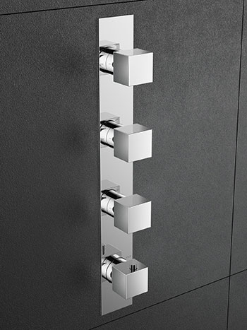 Hotbath Bloke Q050 inbouw douchethermostaat met 3 stopkranen (verticale plaatsing) geborsteld nikkel