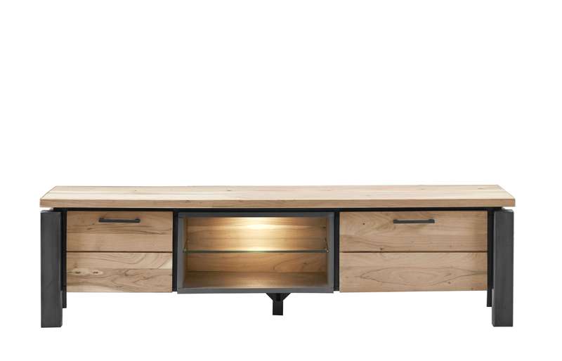 Geef het interieur van de woonkamer een exclusieve touch met tv-dressoir Charly. De kast is gemaakt van massief acaciahout en het frame is uitgevoerd in metaal. In de twee open vakken is LED-verlichting aangebracht, zodat je mooiste foto's of accessoires extra goed tot hun recht komen. Het tv-dressoir heeft ook nog twee kastruimtes, zodat er plaats is voor het opbergen van een aantal items.