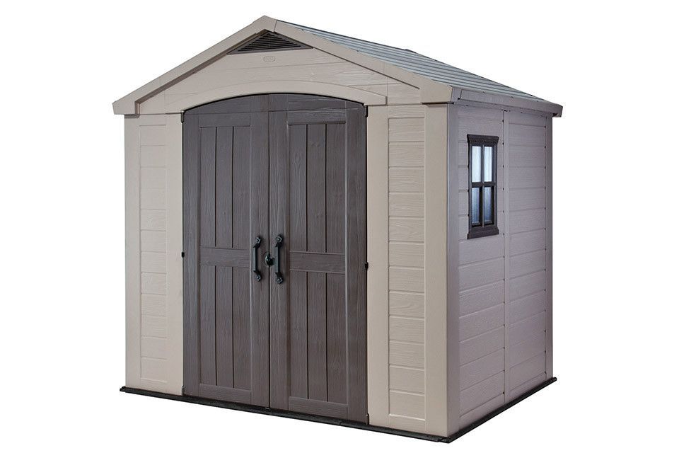 Stevige vloer voor optimale beschermingStevige vloer voor optimale beschermingIn dit kunststof tuinhuis van Keter blijven al uw opgeborgen eigendommen in topconditie. Daar staan we niet alleen garant voor met de duurzame kunststof constructie van dit tuinhuis. Dit Factor tuinhuis is namelijk tevens voorzien van een stevige vloer die uw spullen een optimale bescherming biedt voor modder en regenwater. U kunt uw spullen dus altijd met een gerust hart in uw kunststof tuinhuis achterlaten, onder welke weersomstandigheden dan ook. Ondanks de stevigheid, is de vloer daarnaast laag genoeg om met alle gemak een grasmaaier naar binnen te kunnen rijden.Ventilatieroosters voor goede luchtstroomIn dit Keter Factor tuinhuis blijven uw opgeslagen spullen in topconditie. . Daar wordt onder andere voor gezorgd door het ingebouwde ventilatieroosters onder de nok van dit kunststof tuinhuis. Dit ventilatierooster zorgt voor voldoende luchtstroom, zodat er binnenin uw tuinhuis altijd frisse lucht aanwezig is.De frisse lucht zorgt ervoor dat spullen beter droogblijven in uw Keter kunststof tuinhuis.Het tuinhuis leent zich hierdoor niet alleen perfect als berging, maar is daarnaast prima in te richten als werkplaats. In dit kunststof tuinhuis klust u namelijk altijd in een frisse omgeving.VentilatieroostersOnderhoudsvriendelijk kunststofOnderhoudsvriendelijk kunststofHet grootste voordeel van een kunststof tuinhuis, perfect bestand is tegen weersinvloeden. Dit zorgt ervoor dat uw tuinhuis altijd dezelfde prachtige uitstraling blijft houden als toen u dit kunststof tuinhuis aanschafte.Een kunststof tuinhuis is onderhoudsvriendelijk, een paar keer per jaar met de tuinslag hem afspuiten en u bent klaar. U kunt dus genieten van een tuinhuis dat jaar in jaar uit mooi blijft. Zo houdt u tijd over om andere leuke dingen te doen.