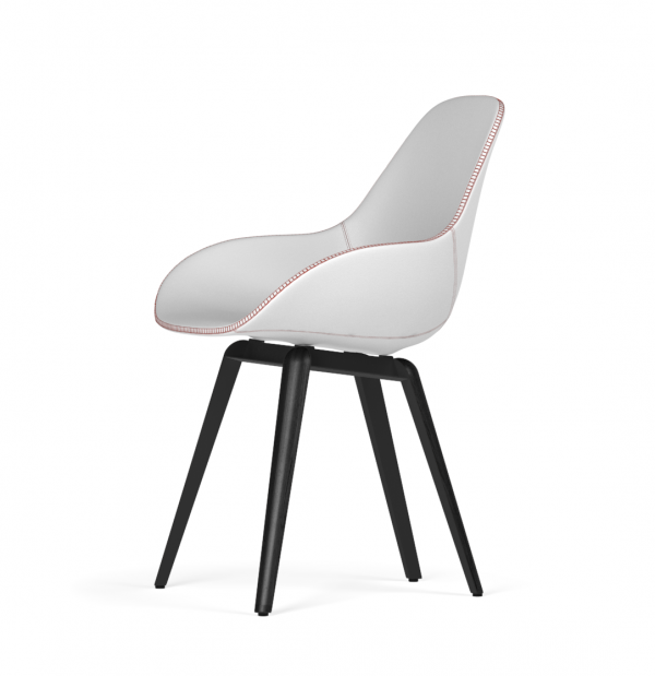Kubikoff Slice stoel – Dimple Tailored shell – Leer – Zwart met zwarthout onderstel –