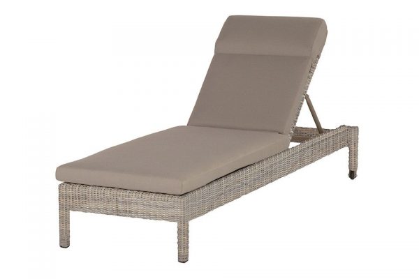 Ontspannen genieten doet u deze zomer in uw eigen tuin met het prachtige Mambo ligbed. Het kussen is om de bovenzijde gespannen, zodat het altijd goed blijft zitten en u comfortabel kunt genieten. Ook heeft dit ligbed een verstelbare rugleuning, zodat u deze in uw gewenste stand kunt zetten en handige wielen zodat deze gemakkelijk te verplaatsen is. Dit 4 Seasons Outdoor ligbed is gemaakt van wicker in de kleur provance met kussen in taupe kleur, waardoor u het goed kunt combineren met loungesets zoals de Brighton of Elite loungeset die uitgevoerd zijn in dezelfde wicker- en kussen kleur.
