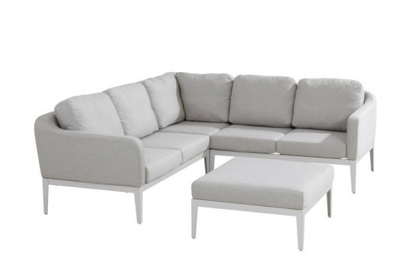 Almeria loungeset – Comfort en kwaliteit in één!De Almeria loungeset van 4 Seasons Outdoor staat voor kwaliteit en gebruikscomfort door de makkelijke te onderhouden materialen zoals Sunbrella® en gepoedercoat aluminium. De kussens hebben een all-weather vulling, waardoor ze naast comfortabel ook weerbestendig zijn.De Almeria Loungeset bestaat uit:1x Element 2-zits Links Almeria – 127(l) x 85(d) x 84(h) cm, 1x Element 2-zits Rechts Almeria – 127(l) x 85(d) x 84(h) cm, 1x Hoekelement Almeria – 85(l) x 85(d) x 84(h) cm, 1x Voetenbank Almeria – 78(l) x 78(d) x 40(h) cm, 6x Rug-Hoekkussen – 5x Zitkussen – 1x Voetenkussen