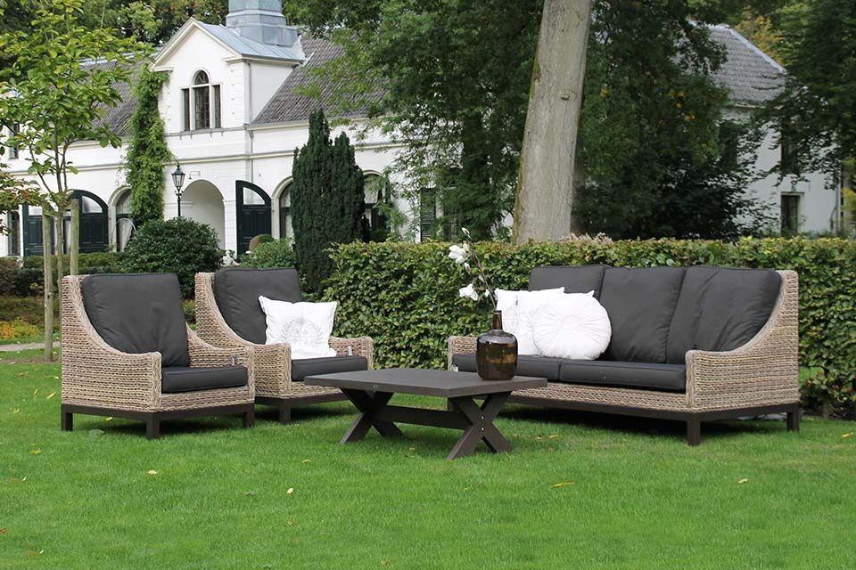 Amazone loungeset – Exclusief ontwerp!De Amazone Loungeset van Apple Bee heeft een luxe en royale uitstraling door de bijzondere vormgeving. De prachtige draad maakt de loungeset uniek. De stevige kussens van deze loungeset hebben een Bee Wett vulling, zodat ze waterdoorlatend en weerbestendig zijn.De Amazone loungeset bestaat uit:1x Amazone loungebank – 205(l) x 90(d) x 95(h) cm, 2x Amazone loungestoel – 73(l) x 90(d) x 95 (h)cm, 5x Rugkussen – 4x Zitkussen