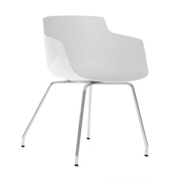 MDF Italia Flow Slim Armchair stoel wit met stalen onderstel chroom