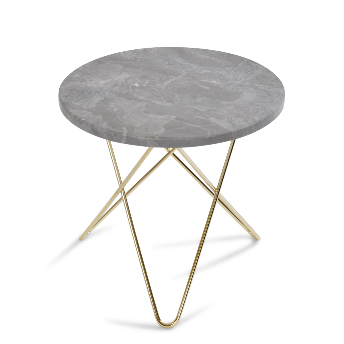 Mini O bijzettafel Ø40 H37 – messing onderstel grijs marmer