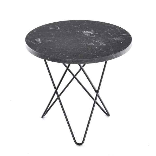 Mini O bijzettafel Ø40 H37 – zwart onderstel zwart marmer