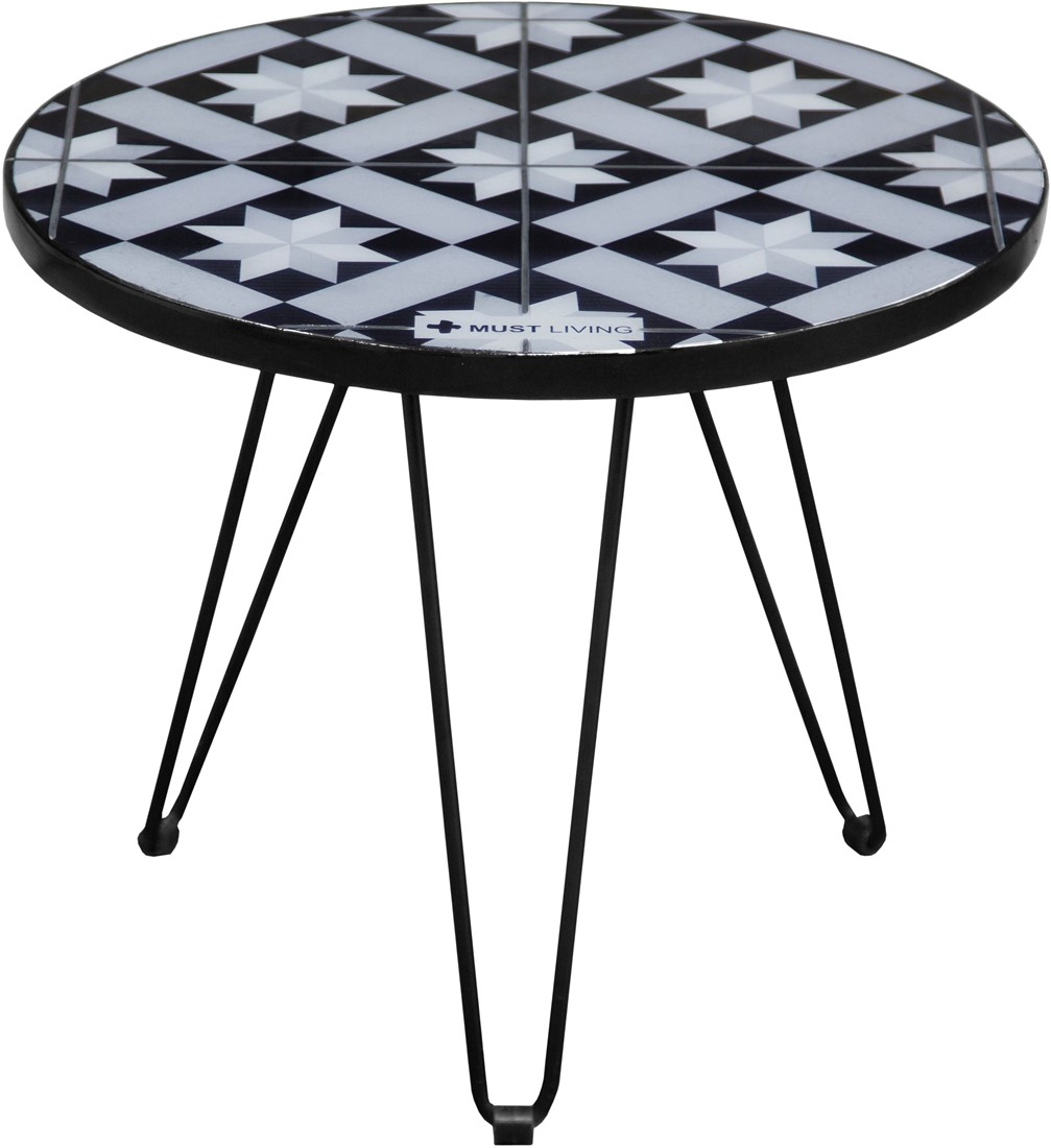 Met deze ronde tafel naast de bank in je woonkamer kies je voor extra ontspannen relaxen. Bijzettafel Sultan is namelijk de perfecte plaats voor het neerzetten van je drankje. Het ontwerp heeft zwart metalen hairpin poten en het tafelblad is ingelegd met een mozaïekpatroon.