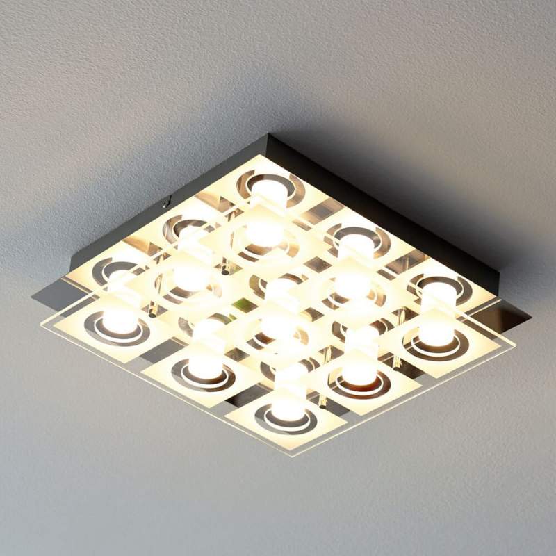 Plafondlamp Joona met bijzonder retro-motief Joona is een jonge, moderne plafondlamp, die moderne woonstijlen perfect onderstreept. Het scherm is met een cirkelvormig patroon gedecoreerd, dat een beetje retro flair uitstraalt en in het bijzonder in aangeschakelde toestand effectief schijnt. De metalen plafondbevestiging in glanzend chroom rondt het totaalbeeld passend af. Joona zorgt voor een sfeervolle algemene verlichting in woon- of slaapkamer. Energie-klasse: A++