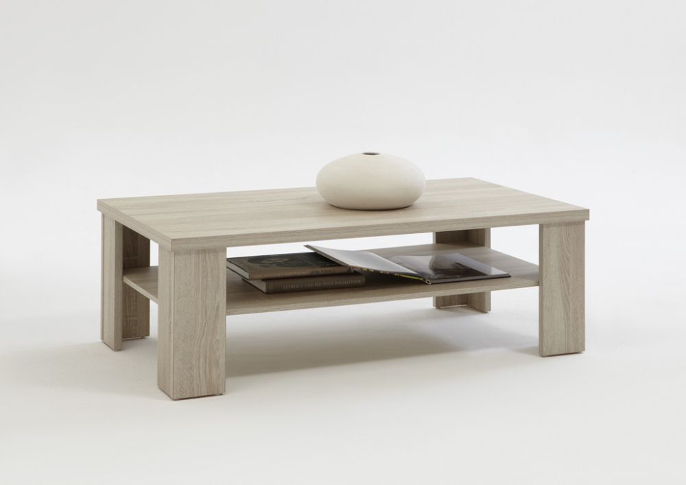 Jouw aandacht trekken met een opvallend ontwerp is niet zo moeilijk, maar beslissen dat dit de tafel van je dromen is, wordt wat lastiger. Gelukkig vat salontafel Rustica deze uitnodiging op als een uitdaging en verblindt jou haast met zijn schitterende uitstraling. Het meubel is vervaardigd van onderhoudsvrij melamine met de look van gekalkt eiken. Tussen de tafelpoten is een extra blad geklemd, zodat je genoeg ruimte hebt om boeken, tijdschriften, onderleggers, accessoires en koffie- en theebenodigdheden neer te zetten. De elegante look van de salontafel maakt dit een topper in woondesign, dat precies aansluit bij de landelijke sfeer van jouw woonkamerinterieur.