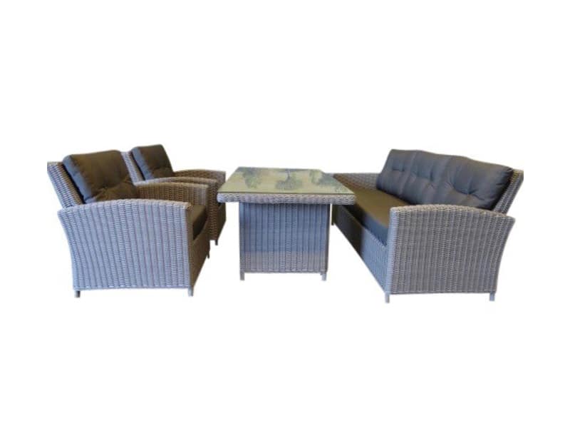 De San Diego dining tuinset bestaat uit:2x lounge stoel van 79 x 77 x 85 cm1x 3-zitsbank van 79 x 191 x 85 cm1x kolomtafel inclusief een glasplaat 148 x 86 x 672x hocker 40?407 mm natural kobo grey vlechtwerkroyal dark grey zit- en rugkussenswaterafstotende kussens.Sterk vlechtwerk uit Indonesi?2 jaar garantie