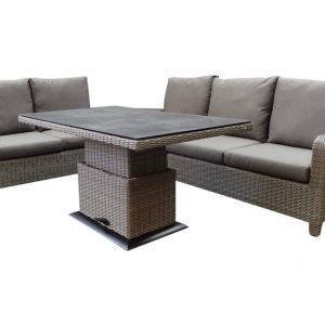 De verstelbare San Francisco dining loungeset bestaat uit 2 verstelbare bankdelen die samen een hoekmaat van 255x200xH100 cm vormen. Ook heeft deze set een tafel met een glasplaat van 145x83xH70 cm. De kleur van het vlechtwerk is grijs, en de kussens zijn antraciet.Wij geven 2 jaar garantie op de San Francisco.