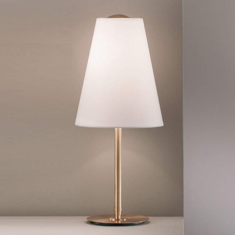 Sympathieke design tafellamp Slant met schuine voet en kantelbare kap Wat wil de tafellamp Slant met zijn schuine constructie ons eigenlijk vertellen? Een provocerend “Kijk, ik ben anders dan de anderen”, of gewoon een gebaar van vriendelijke genegenheid? Het is waarschijnlijk een combinatie van beide. Sympathiek hij in ieder geval, deze tafellamp met unieke schuine stijl. Het lijkt erop alsof deze lamp elk moment kan omkiepen en alsof haar instabiele constructie niet mag worden aangeraakt, omdat zij anders uit balans raakt. Bij een tweede blik bewijst deze lamp het tegenovergestelde. De Slant beschikt over slechts drie steunpunten, maar dat is precies wat haar zo extreem stabiel maakt. In tegenstelling tot vlakke objecten verliest de Slant zelfs op oneffen oppervlakken niet haar gewicht, omdat de standpijp en de daarop gemonteerde dwarsbalk elkaar in wederzijdse interactie ondersteunen. Slant wordt niet snel uit balans gebracht, wat haar vooral geschikt maakt voor drukke omgevingen. Een mooi neveneffect, naast het feit dat deze tafellamp alleen om haar buitengewone verschijning al gewild is. Naast haar inspirerende ontwerp heeft de Slant ook een bijzonder lichteffect. De naadloze stofomhulde, witte polyethyleen kap verspreidt het licht zeer gelijkmatig in haar omgeving. Tijdens de gezellige uren kunt u gebruik maken van de geïntegreerde dimmer in het stopcontact. Zo behoudt de Slant altijd zijn pure uitstraling en ziet er als nieuw uit, omdat de bekleding eenvoudig te verwijderen en wasbaar is. Terwijl de voet van de Slant de symmetrie ontkent, lijkt de kap juist te reageren op de zwaartekracht – denkt men. Om de asymmetrische werking van de Slant te perfectioneren, kan de lampenkap worden gekanteld. Zo kan de Slant in allerlei posities worden gezet en maakt op humoristische en aangename manier indruk op haar kijkers. Energie-klasse: D