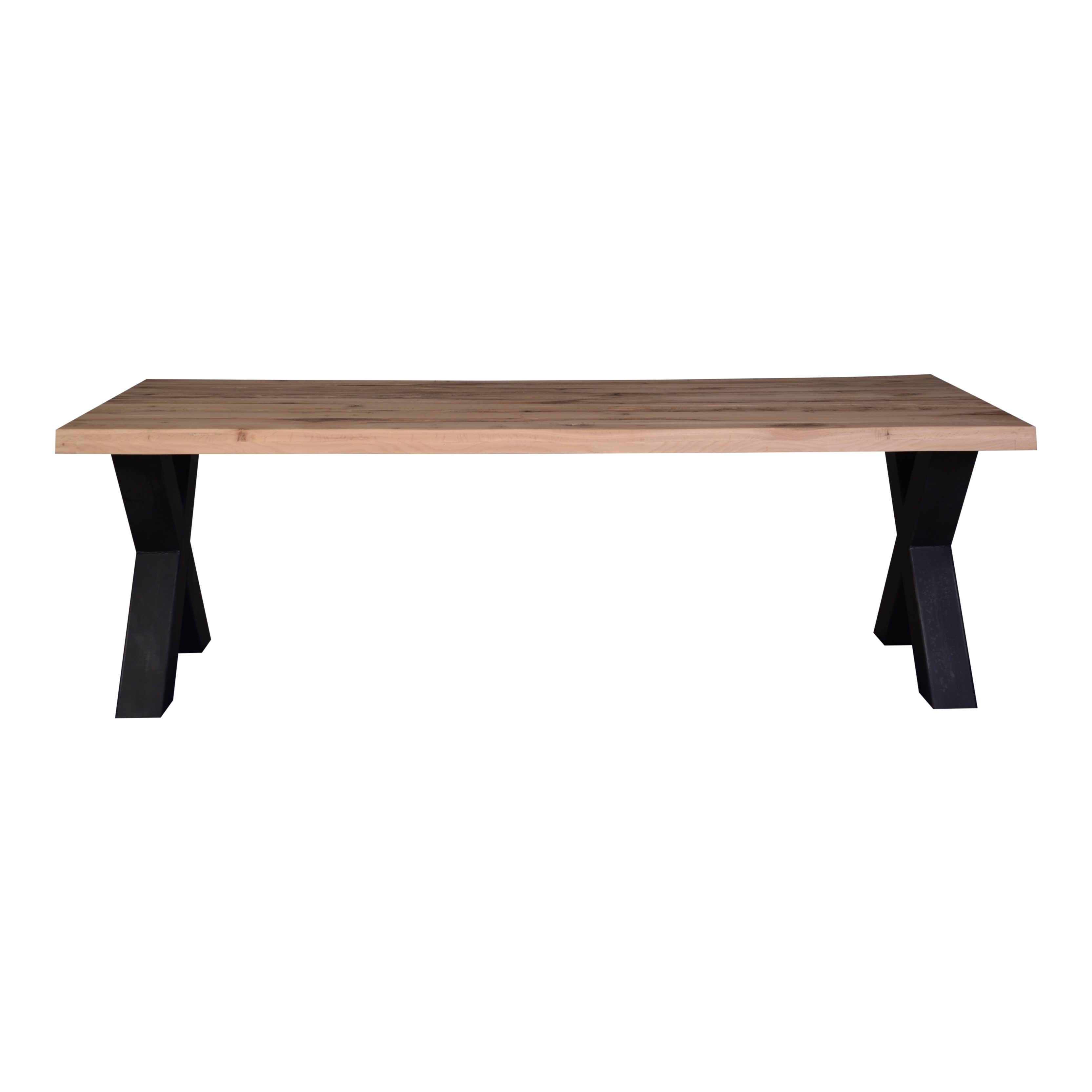 Eetkamertafel Beckett is uitgevoerd in extra groot formaat, zodat je al je vrienden gastvrij kunt onthalen. De tafel heeft een x-poot van zwart metaal en het blad is gemaakt van massief rustiek eikenhout met boomstamkant. Dat maakt eettafel Beckett tot een bijzonder meubel met een rustieke uitstraling.