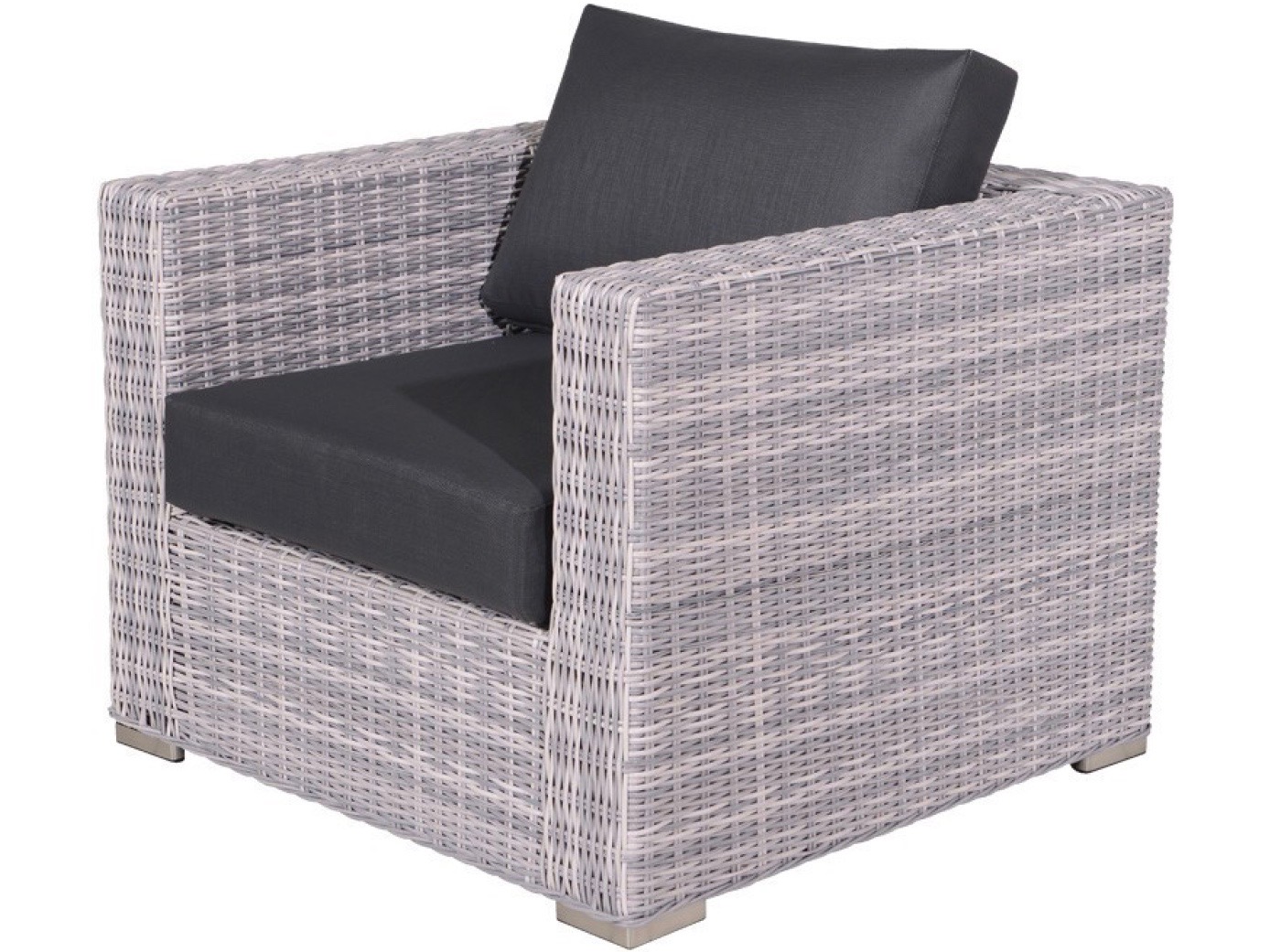 Robuuste Tennessee lounge dining stoel in de mooie kleur cloudy grey met een aluminium binnen frame. Deze lounge dining stoel is gevlochten met 5 millimeter half rond vlechtwerk draad en wordt compleet geleverd met luxe all-weather kussens van textilene in de kleur antraciet met daarin een comfortabele sneldrogende vulling. Deze lounge dining stoel heeft mooie brede armleuningen van 14 centimeter breed, een kussen zitkussen dikte van 15 centimeter en een totale zithoogte van 48 centimeter. De zithoogte van de stoel is 96?93 centimeter. De Tennessee lounge dining stoel is los verkrijgbaar, maar kunt u uiteraard ook combineren met de talloze items uit de Tennessee serie.