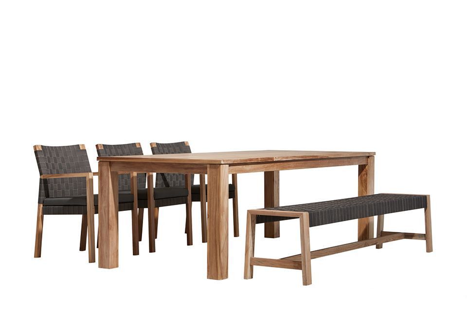 Square Tuinset – Elegant met een speelse twist! De Square tuinset van Apple Bee is gemaakt van hoogwaardig SVLK gecertificeerd teakhout. Hierdoor heeft u een karaktervol en verantwoord product. Teakhout heeft een natuurlijk karakter, waardoor het kan wijken en na verloop van tijd zonder behandeling zal vergrijzen. De Belt Weaving is uitzonderlijk sterk en volledig weerbestendig. Deze tuinset bestaat uit: 3 Square Tuinstoelen – 59(l) x 59(d) x 85(h) cm, 1 Square Tuinbank – 210(l) x 40(d) x 45(h) cm, 1 Oxford Tuintafel – 240(l) x 100(d) x 78(h) cm Tuinset kopen bij Fonteyn?Bent u op zoek naar een hoogwaardig tuinset? Dan bent u bij Fonteyn op de juiste plaats. Bij Fonteyn heeft u keuze uit een enorm aanbod tuinsets, dat breed staat uitgestald in onze riante showroom. Hier kunt u zich laten inspireren door de vele tuinmeubelen die u worden gepresenteerd in sfeervolle tuinsettingen. U kunt voor de juiste keuze altijd één van onze deskundige adviseurs raadplegen. Kom de Apple Bee Tuinset uitproberen en ervaar zelf de goede kwaliteit. Dankzij onze enorme opslagkelder hebben wij veel tuinmeubelen op voorraad, zodat u er snel van kunt genieten. Voor vragen zijn wij zes dagen per week bereikbaar in de showroom, per telefoon of per e-mail.