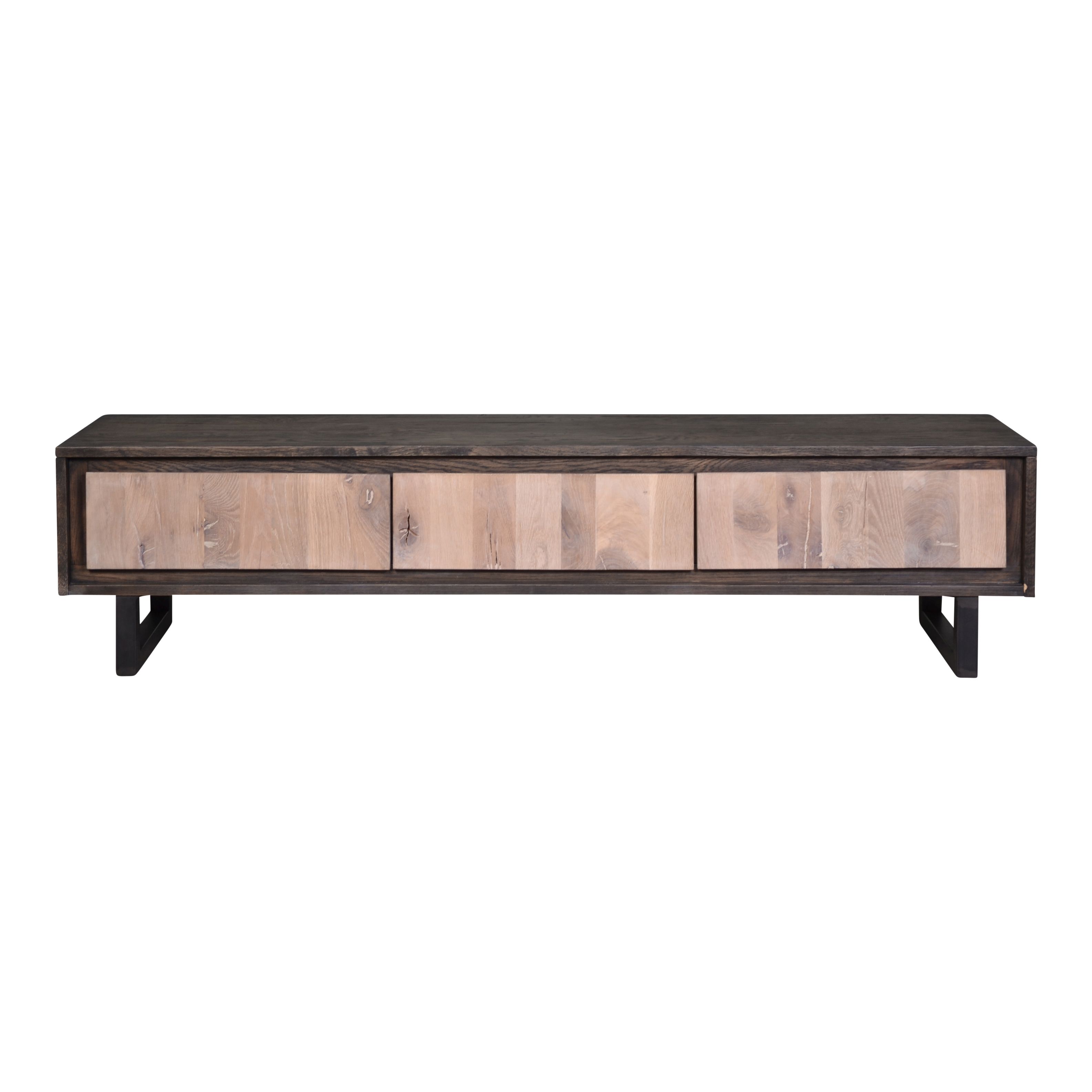 Dit stijlvolle tv-dressoir uit de serie Amsterdam is met zijn stoere uitstraling een meubel, dat precies in jouw interieur past. Tv-dressoir Amsterdam is gemaakt van robuust eikenhout in de kleuren lava en oil white met een onderstel van zwart metaal. De drie lades zijn voorzien van soft close.